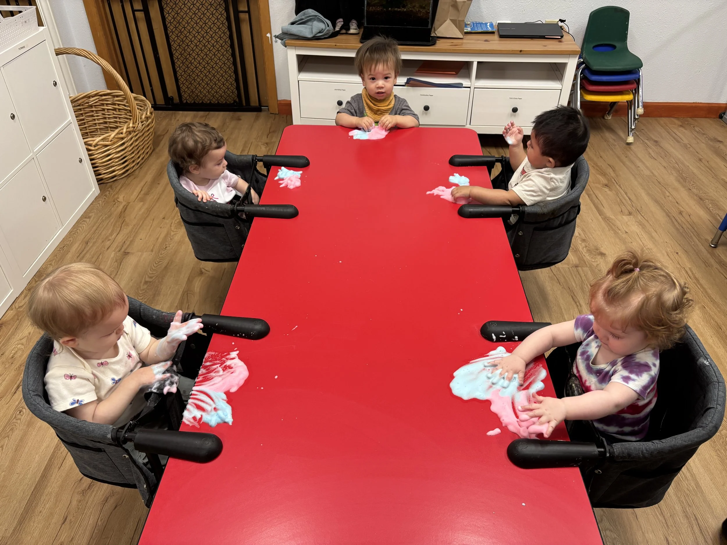 Welcome to the Wobbler Wing, where we love babies! We get to teach littles ones how to roll over, stand up, walk, eat, clean up toys, and to play with friends. The classroom has been designed by Early Childhood Education specialists to provide safety, comfort, learning experiences, and social interactions to children from ages 6 weeks to 18 months.